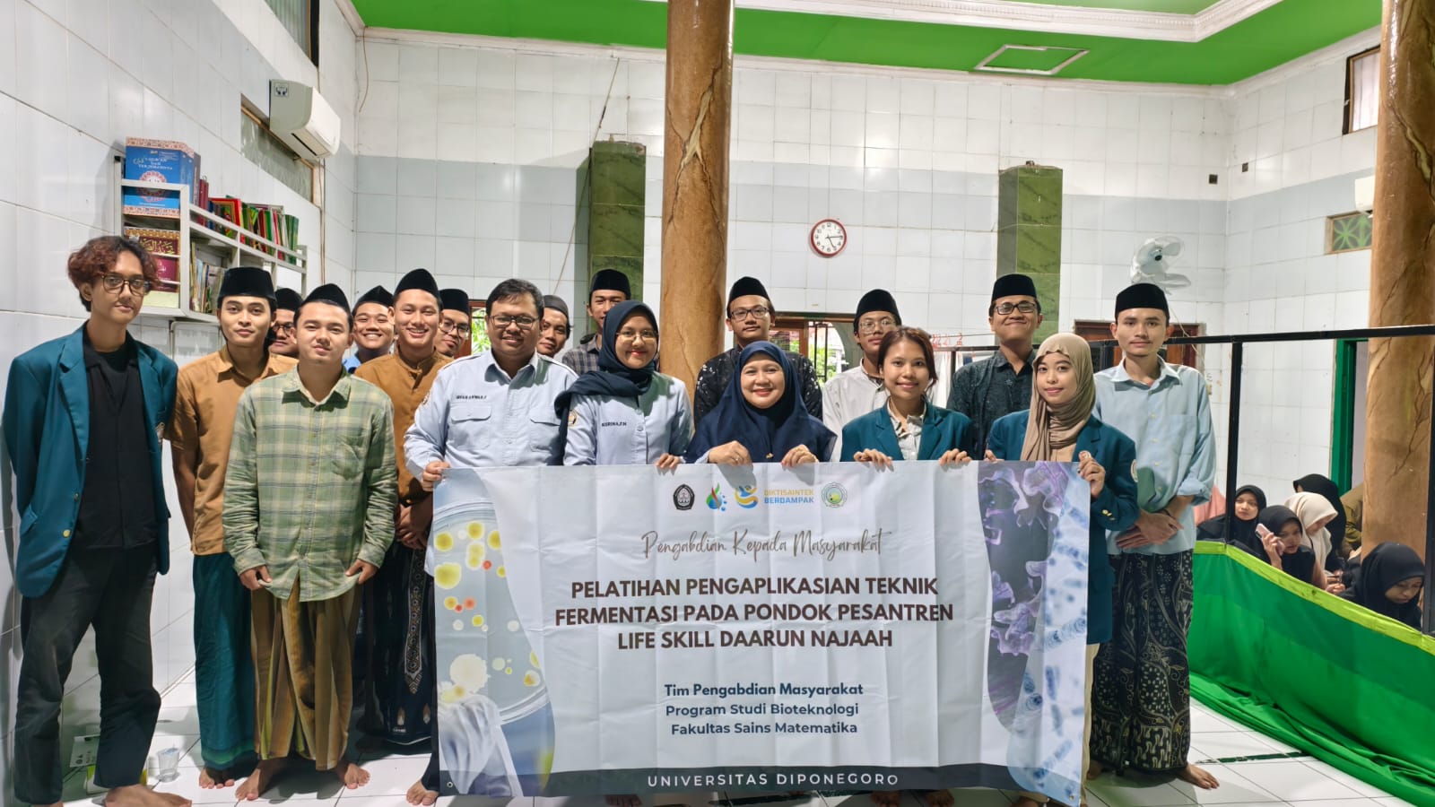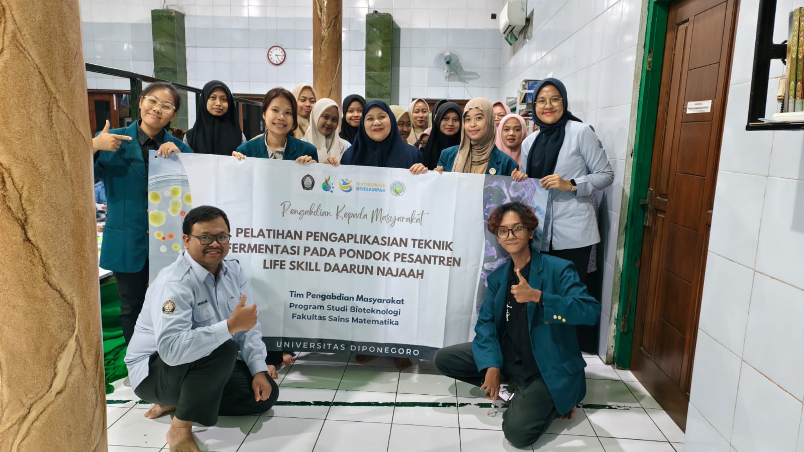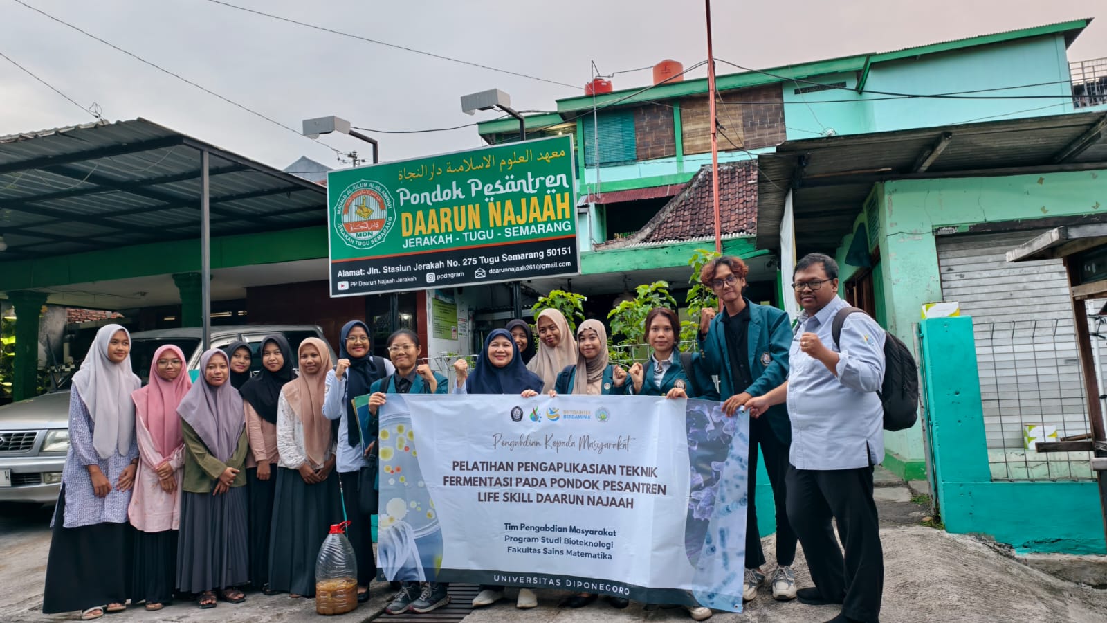 Semarang, 30 Oktober  2025 — Program Studi Bioteknologi, Fakultas Sains dan Matematika Universitas Diponegoro (FSM UNDIP) kembali memperkuat perannya dalam penerapan ilmu bioteknologi terapan melalui kegiatan pengabdian masyarakat bertajuk “Pelatihan Pembuatan Nata de Coco secara Fermentasi” di Pondok Pesantren Daarun Najaah, Kota Semarang.