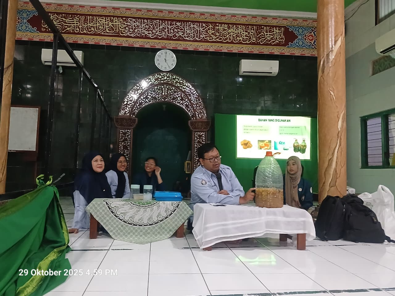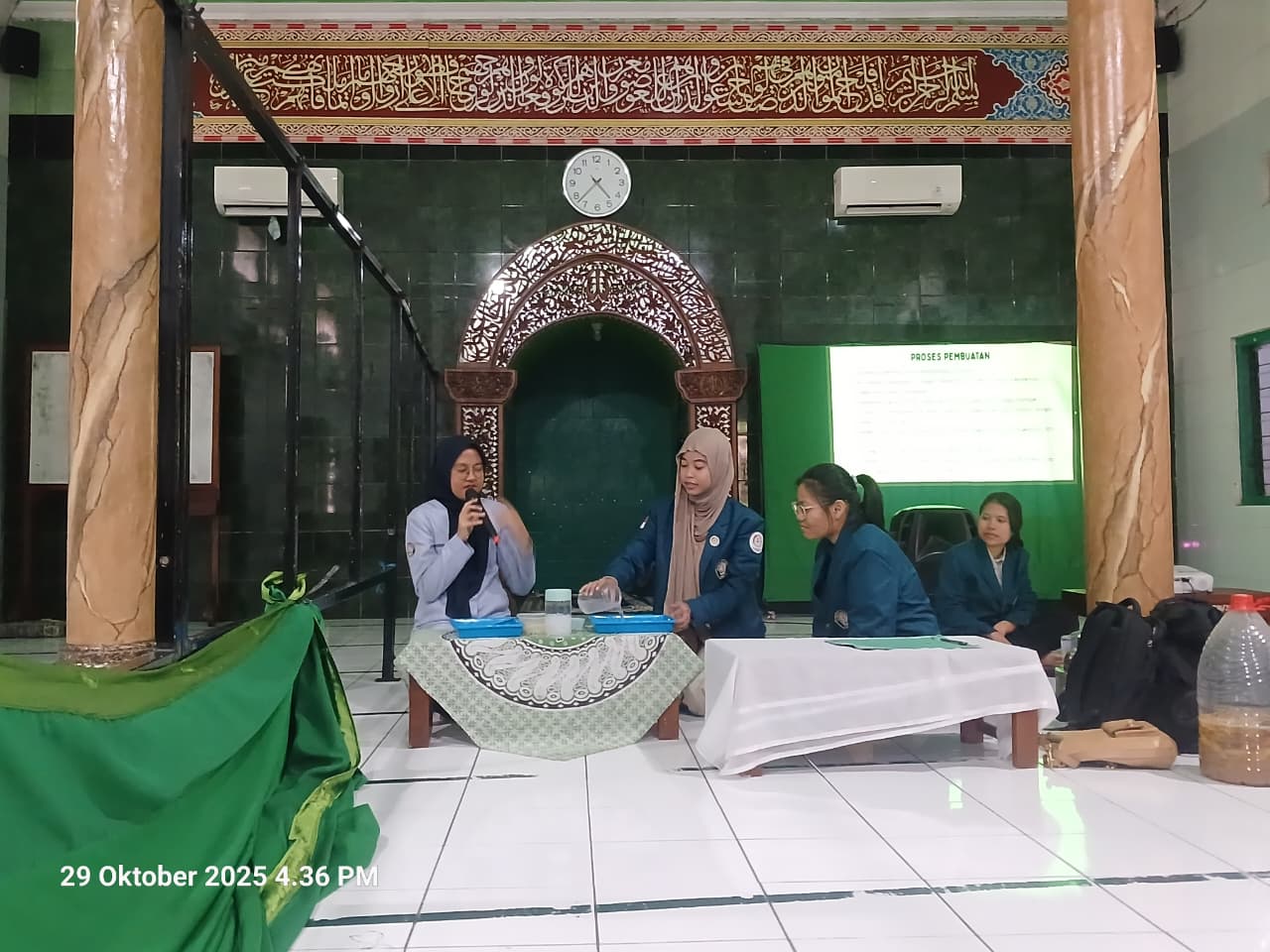 Pelatihan ini membekali peserta dengan kemampuan mengolah air kelapa menjadi nata de coco melalui proses fermentasi menggunakan bakteri Acetobacter xylinum sebagai agen pembentuk selulosa. Melalui sesi penyuluhan dan praktik langsung, para santri mempelajari tahapan pembuatan nata mulai dari persiapan bahan, proses fermentasi, hingga pengolahan pascafermentasi. Kegiatan ini juga disertai dengan penjelasan ilmiah mengenai proses pembentukan selulosa mikroba serta manfaat kesehatan dari nata de coco.