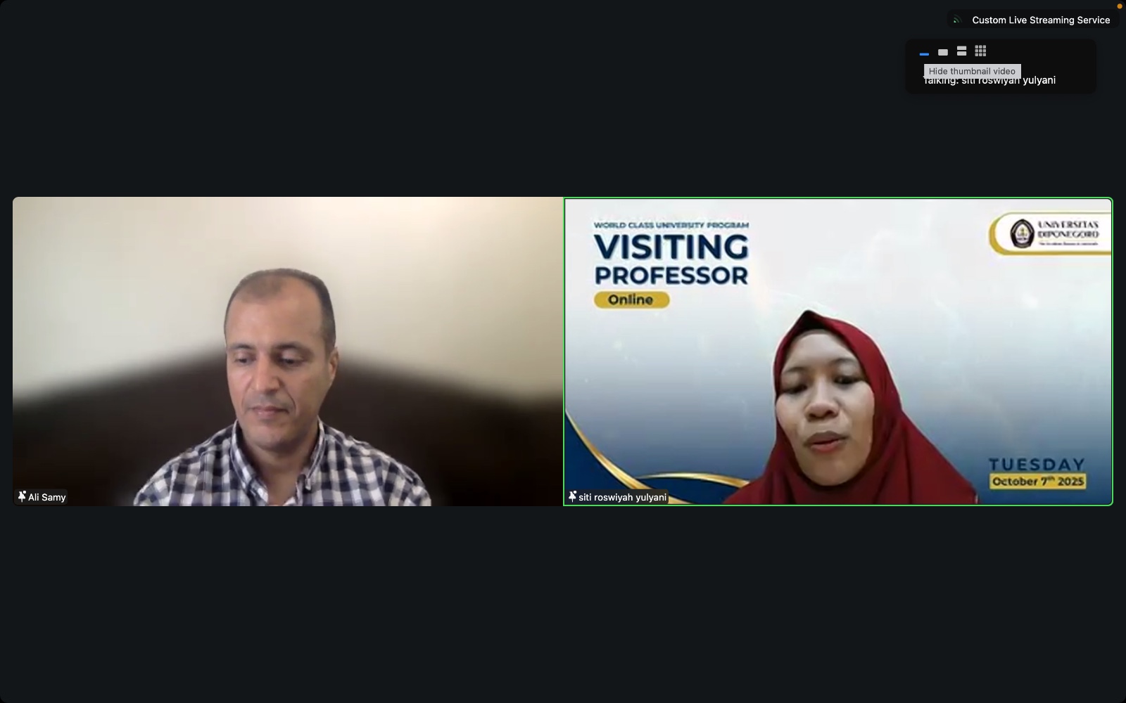 Semarang, October 7, 2025 — The Biotechnology Study Program, Faculty of Science and Mathematics, Diponegoro University, once again held an Online Visiting Professor Lecture entitled “Innovations in Industrial Biotechnology: Metabolic Engineering for Sustainable Biofuel Production.” This event is part of the World Class University (WCU) program, aimed at strengthening international collaboration and broadening academic perspectives in the fields of industrial biotechnology and renewable energy.